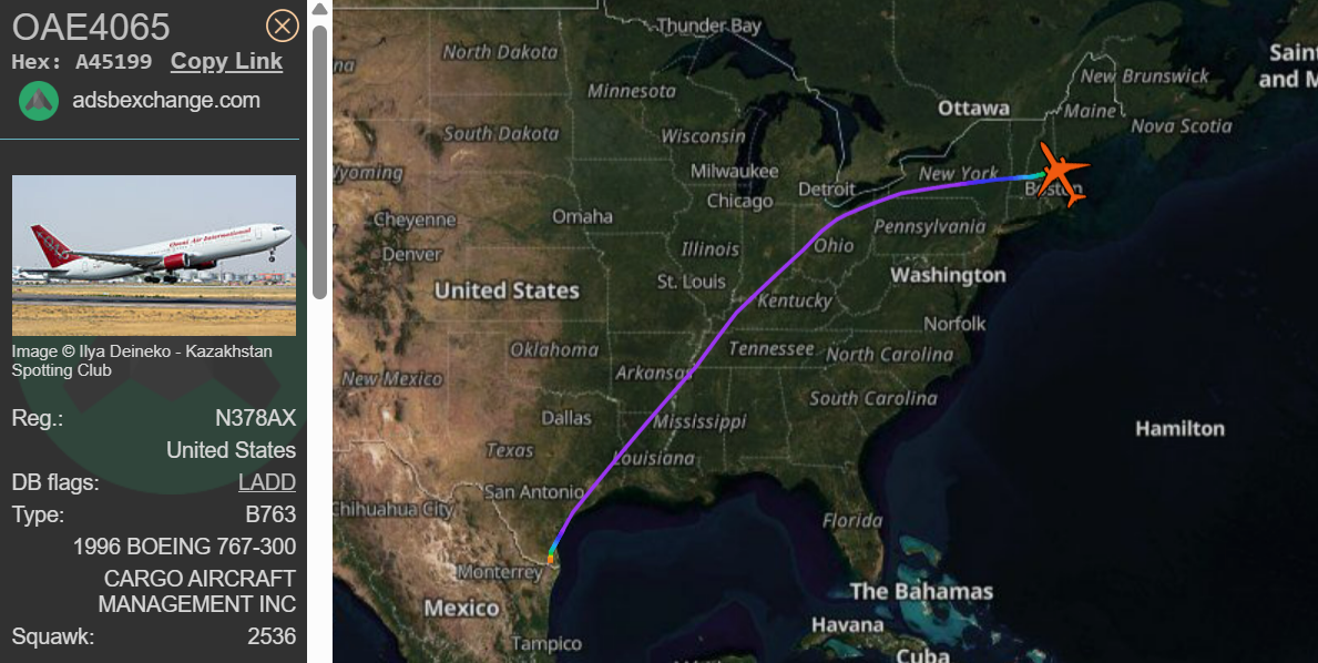 The Omni plane left Harlingen, Tx., at 9:13 p.m. ET on Sunday night, according to public flight data. It was scheduled to stop in Portsmouth before flying to Sofia, Bulgaria. Both are regular fuel stops for Omni's deportation routes to Asia.