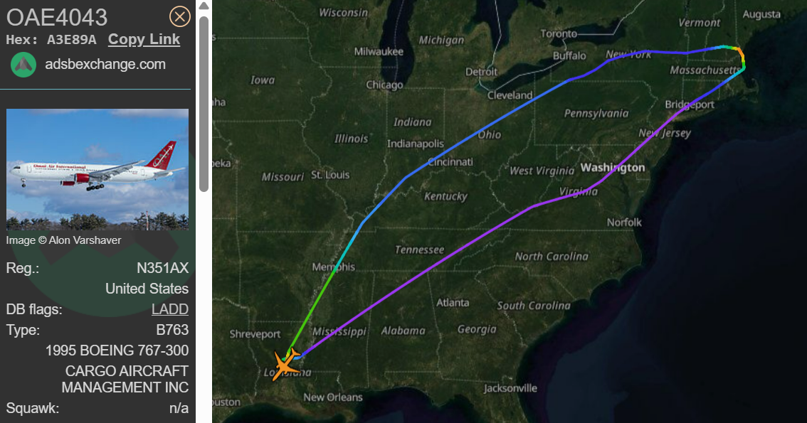 A day before this flight, another likely ICE flight operated by Omni landed at Portsmouth and sat on the tarmac for 7 1/2 hours before returning to Alexandria, LA, an ICE detention center hub. It had been scheduled to fly to Sofia, Bulgaria. The reason for the delay and the aborted trip is unclear, though flight data and air-traffic control transmissions indicate the aircraft's pressurization system may have been malfunctioning.