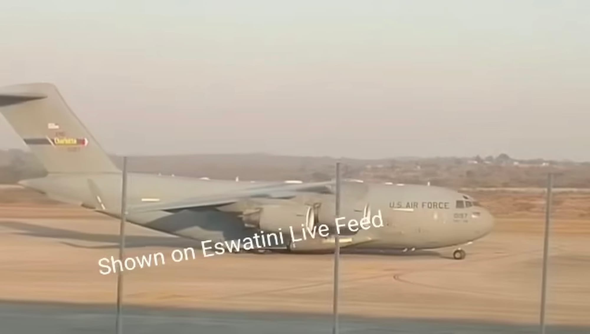Hours later, DHS spokeswoman Tricia McLaughlin announced five more migrants had been removed to a third country. She didn’t say how the men got there, but a video later posted to an Eswatini Facebook group shows a U.S. Air Force C-17 Globemaster III with the registration number 02-1107 taxiing down a runway that matches satellite images of King Mswati III International Airport.
