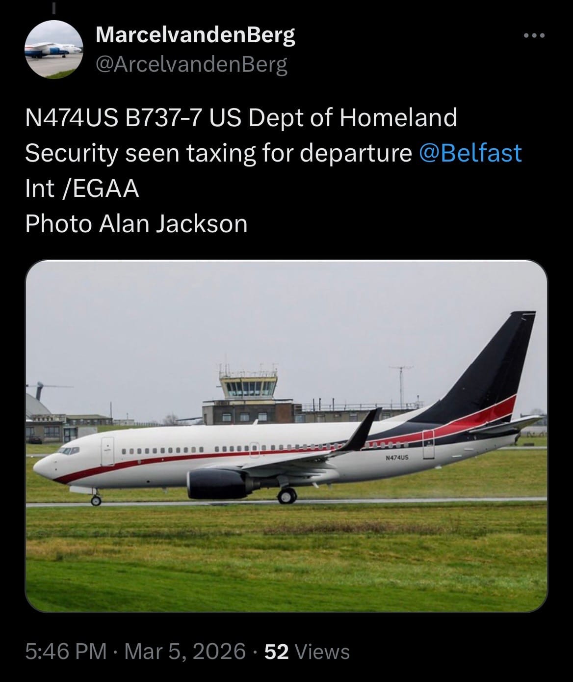 An avgeek spotted one of the deportation jets during a fuel stop in Belfast, revealing a weirdly familiar paint job.